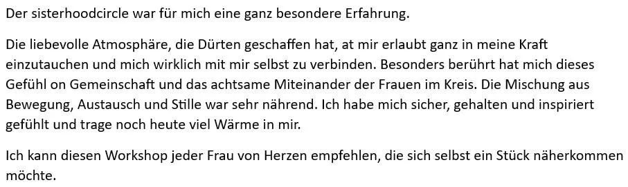 Ja, absolut! Du brauchst keine Erfahrung mit Meditation, Bewegung oder Sisterhood Circles. Alles, was du mitbringen musst, ist Offenheit. Hier gibt es kein Richtig oder Falsch – nur dich und deine eigene Erfahrung.